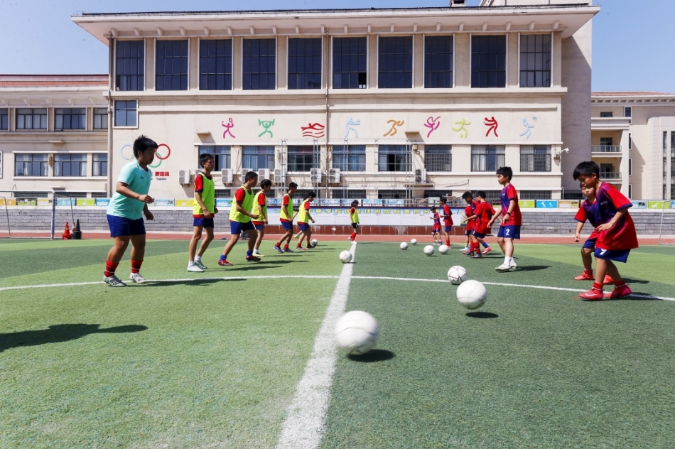 绿茵场上跃动的身影划出青春弧线,此起彼伏的呐喊声激荡校园上空。在张青小学的足球场上,校足球队队员正进行5对5对抗赛。该校副校长郑立朋介绍,学校于2018年被教育部认定为全国青少年校园足球特色学校,现有D级、E级足球教练员各一名,组建男子、女子足球队,全校每班每周开设两节足球课,并利用早训和兴趣社团开展足球训练活动。学校每年举办班级足球联赛,承办片区校园足球联赛,积极参加市、县级校园足球联赛。