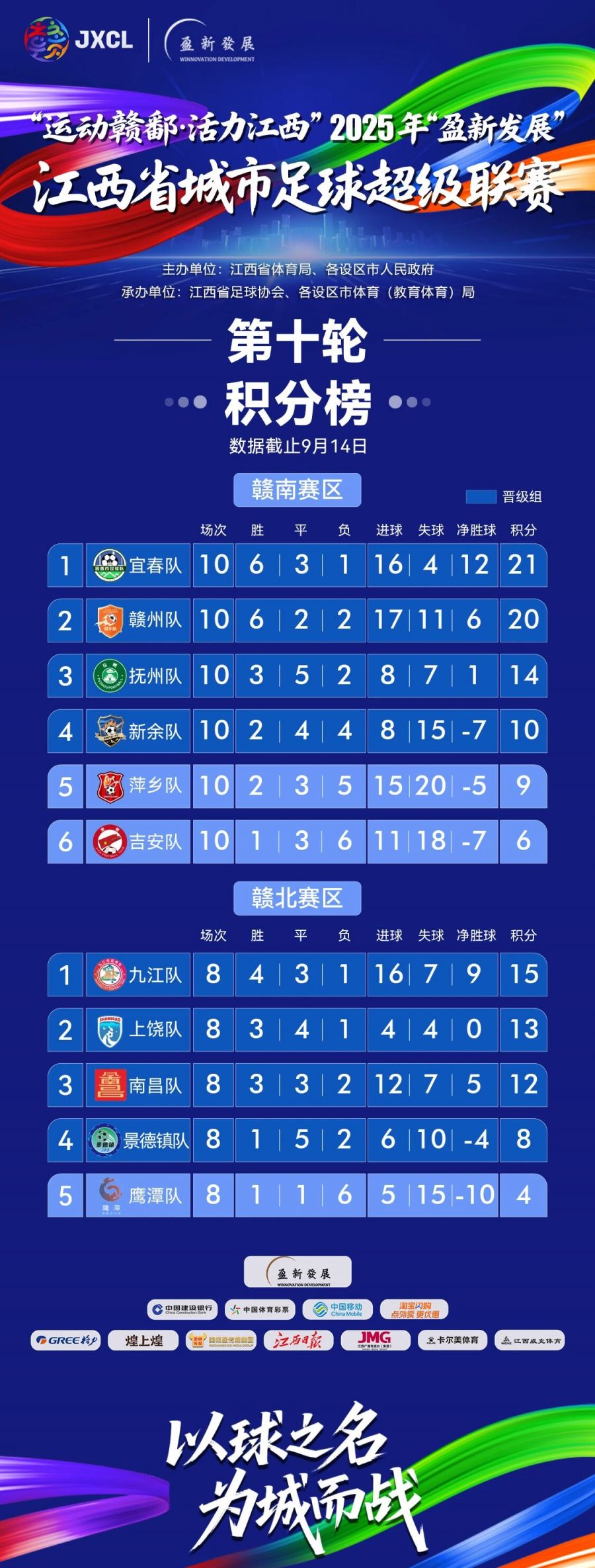 赣超联赛,江西城市足球,赣超赛程,赣超比分,赣超球队,赣超直播2025赣超联赛积分榜出炉!本次赛事采用 “分区对抗 + 交叉对决” 的分阶段复合赛制,具体积分情况详见正文。