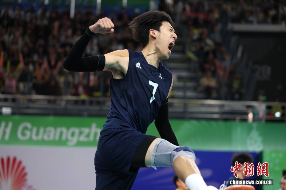 11月12日,第十五届全国运动会男排U20组决赛在广州华南农业大学体育馆举行,浙江队(蓝)以3:1战胜江苏队夺得金牌。中新社记者 富田 摄
