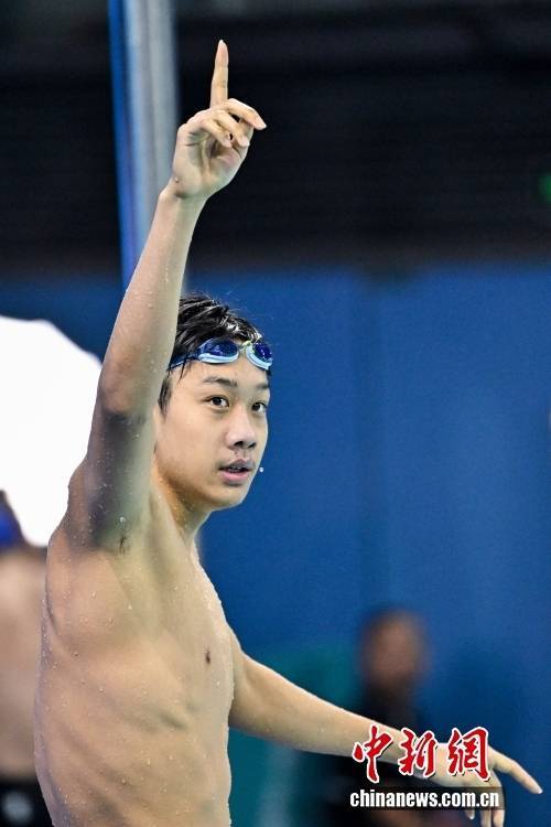 11月12日晚,第十五届全国运动会男子200米自由泳决赛在深圳大运中心游泳馆开赛,18岁小将张展硕夺得冠军。中新社记者 韦亮 摄