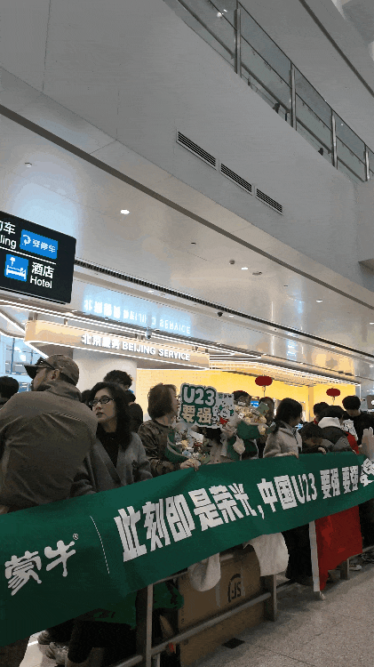 这份对要强精神的珍视与鼓舞,也化作了线国足回国当天,蒙牛专程在北京机场等候接机,拉起“此刻即是荣光 中国U23 要强 要强 要强”的醒目横幅,以最真挚的姿态迎接少年们载誉回家。