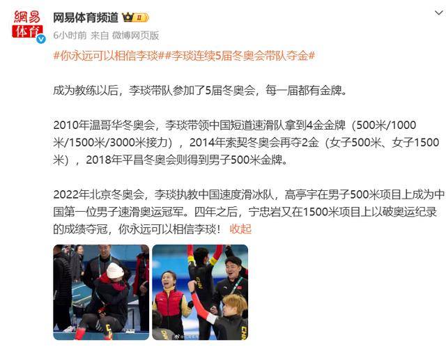 而在距离这块冰场不远的短道速滑馆,气氛却截然相反,同样是曾经的金牌之师,中国短道速滑队在这届冬奥会上仅收获一枚银牌,创下了近16年来男队的最差战绩,冰火两重天的局面,让一个名字再次被推至聚光灯下,现任中国速度滑冰队总教练李琰,官方媒体用一句“你永远可以相信李琰”道出了所有人的心声,也让另一位教练张晶的处境显得愈发尴尬